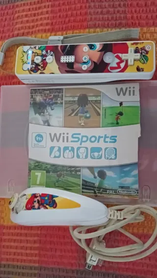 Consola Nintendo Wii com o jogo Wii Sports incluído. O comando tem um design personalizado com o Mario. Inclui um disco rígido externo com 34 jogos - Cartão de memória para instalação de backups. - 2 comandos - Transformador - Receptor de infravermelhos - 1 jogo original - Cabos de ligação - Comando Wii com design temático. - Jogo Wii Sports.