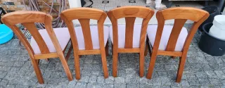 Conjunto de quatro cadeiras com estrutura em madeira e assentos estofados. - Design clássico e elegante. - Assentos confortáveis. - Ideal para sala de jantar ou cozinha.