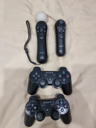 Conjunto de consola PlayStation 3. - Inclui 4 comandos. - Inclui jogos: Starter Disc, Metal Gear Solid IV Guns of the Patriots, Smackdown e Raw 2009 e 2010, FIFA08,FIFA09 FIFA 11, FIFA 12. - Inclui câmara. - Inclui cabo de alimentação e cabos AV.