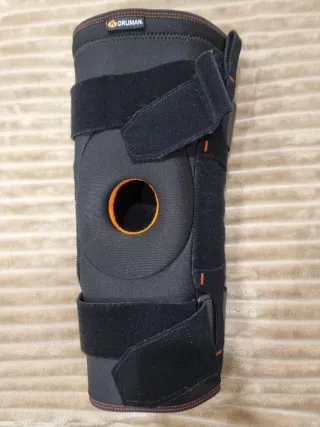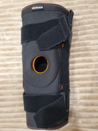 Joelheira ortopédica da marca Orliman. Possui um design anatômico para maior conforto. - Abertura na rótula. - Estabilizadores laterais. - Tiras ajustáveis com velcro.