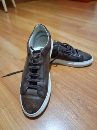 Sapatos casuais em pele castanha da Massimo Dutti. - Design elegante e moderno. - Fecho com atacadores. - Sola branca contrastante.