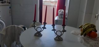 com cerca de 15 cm para velas redondas ou em forma de rosa . castiçal tem a forma de um pé de flor com folhas.