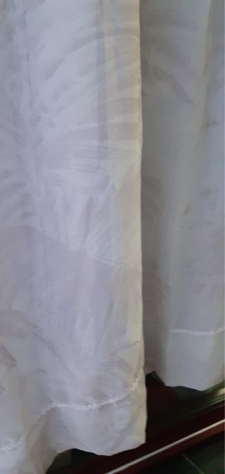 3 Cortinados com 230 alrura, e 300 cm largura 26 cm bainha são 3 todos brancos con um aplique na bainha como na foto