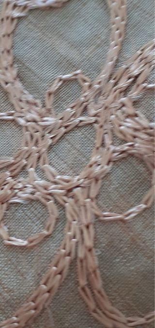 1 Cortinado com 220 altura, e 300 cm largura 26 cm bainha. todo branco com uma aplicação na bainha como na foto