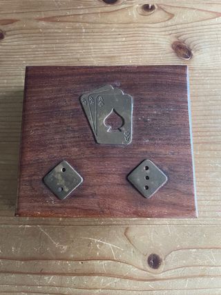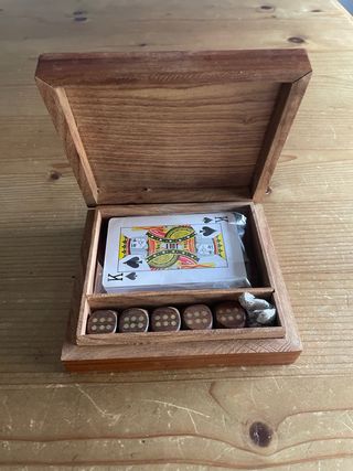 caixa de cartas com dados decorativa, prática para belos jogos de convivio em casa.