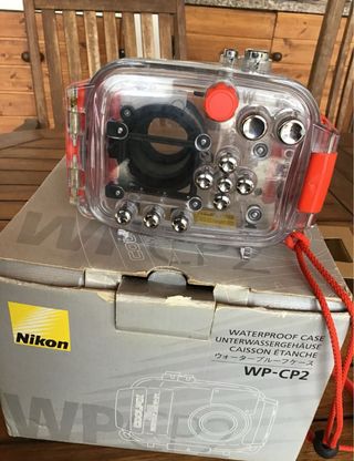 Vendo caja estanca para cámara Nikon WP-CP2, en buen estado. Ideal para proteger tu cámara bajo el agua. - Compatible con cámaras Nikon COOLPIX 4200 y 5200. - Transparente y robusta. - Incluye caja original.