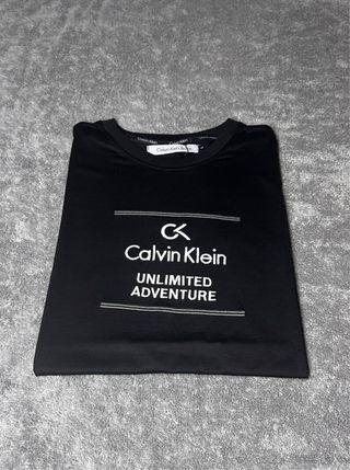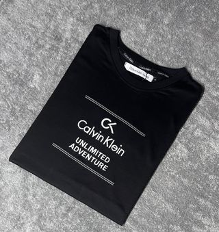 T-shirt da Calvin Klein em preto com estampa. - Logo CK na frente. - Estampa Unlimited Adventure abaixo do logo. - Gola redonda.