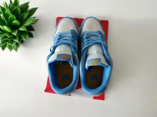 Tênis Nike Dunk com um design moderno e cores vibrantes. - Combinação de Azul e Amarelo - Detalhes icônicos da marca.