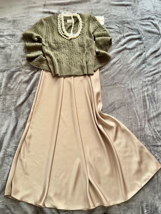 Saia longa em cetim com um caimento elegante. - Material: Cetim - Cor: Bege e verde