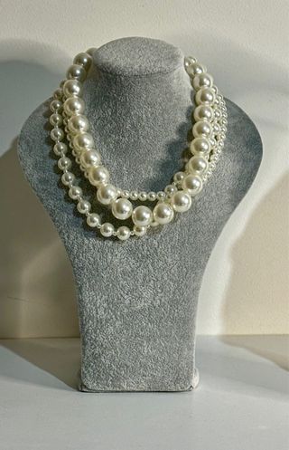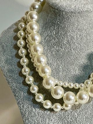 Colar elegante com várias camadas de pérolas. - Pérolas de diferentes tamanhos. - Design clássico e sofisticado.