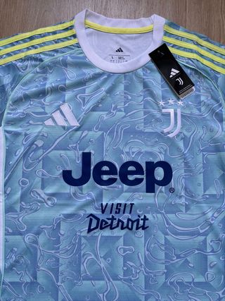 Camisola de futebol da Juventus, modelo Away Kit. - Design moderno com padrão abstrato. - Detalhes icónicos da marca. - Confortável e respirável. Também disponível em XL