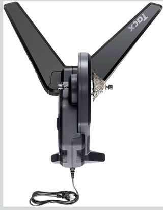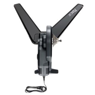 Rodillo electrónico Tacx para bicicleta. - Diseño plegable para fácil almacenamiento. - Incluye cassette. - Conexión eléctrica.