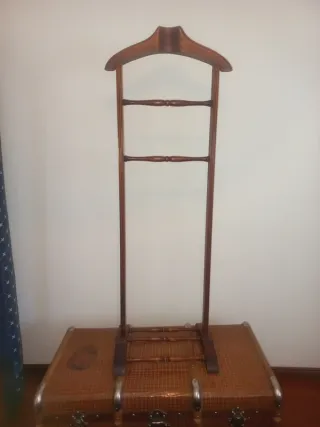 Cabide de pé estilo mordomo, uma peça de mobiliário em madeira com um design clássico dos anos 80. Altura - 130 cm Largura - 47 cm Em madeira maciça.