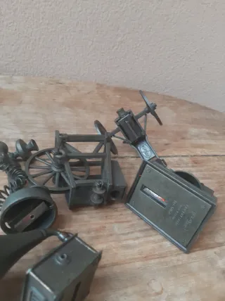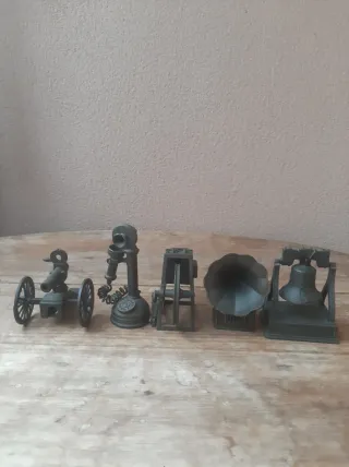 Conjunto de cinco afias com alguns sinais de uso - Afia em formato de canhão - Afia em formato de telefone antigo - Afia em formato de moedor - Afia em formato de gramofone - encontra-se partido mas como dá para ver pela foto dá para encaixar - Afia em formato de sino