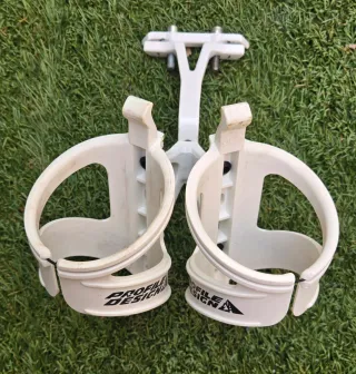 Suporte duplo para bidons de triatlo Marca: Profile Design Cor: branca Design aerodinâmico