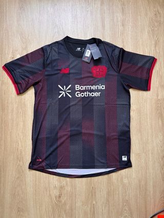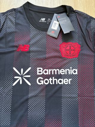 Camisola do Bayer Leverkusen. - Design com padrão gráfico. - Logótipo da New Balance. - Escudo do clube. - Patrocínio Barmenia Gothaer.