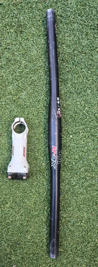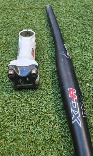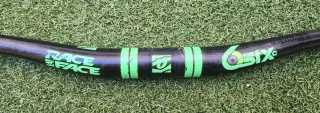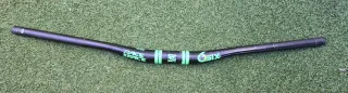 Guiador Race Face Sixc em carbono Marca: Race Face Modelo: Sixc Rise: 20mm Material: Carbono Diâmetro: 35mm Comprimentos: 820mm Cor: verde e preto Usado durante um ano, apresenta alguns riscos unicamente dos transportes, nunca sofreu quedas nem embates. Não está partido nem rachado. (Valor novo worten: 227.44€)