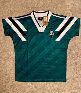 Camisola vintage do Sporting Clube de Portugal. - Tamanho XL. - Cor verde. - Design com detalhes nas mangas.