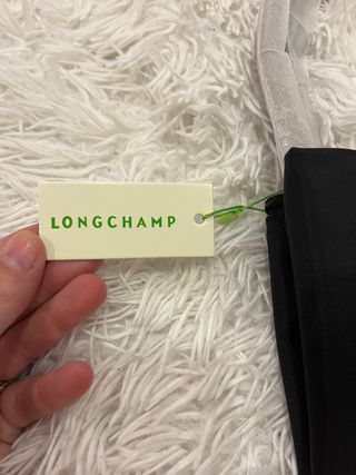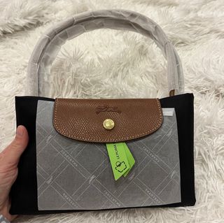 Mala da marca Longchamp. - Cor preta com detalhes em castanho. - Fecho de botão. - Alças de mão.