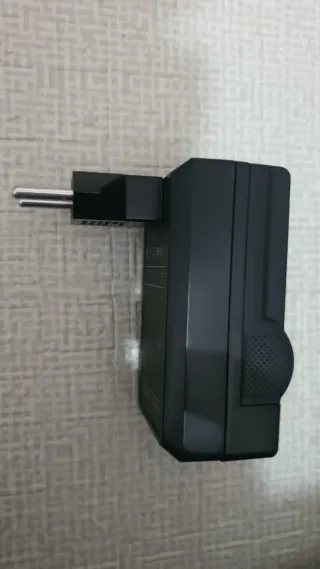 Cargador de batería de color negro. - Diseño compacto. - Enchufe europeo.