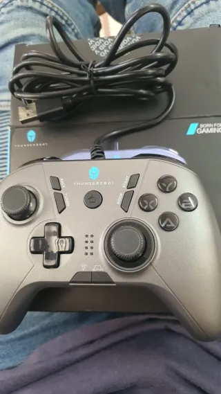 Mando de control para videojuegos de la marca Thunderobot. Diseño ergonómico y moderno. - Color gris. - Conexión por cable USB. - Botones frontales y analógicos.
