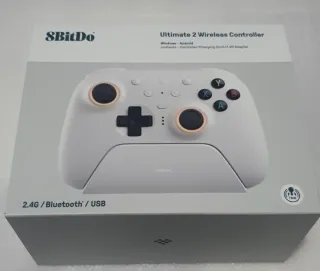 Controlador seminuevo 8BitDo Ultimate 2 Wireless. - Compatível com Windows e Android. - Inclui base de carregamento e adaptador 2.4G. - Conexão 2.4G, Bluetooth e USB.