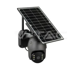 Câmara de vigilância exterior com painel solar integrado. - Alimentada por energia solar e bateria. - Conectividade WiFi e 4G. - Resolução de 4MP. - Design compacto e discreto. - Visão noturna a cores e infravermelhos.