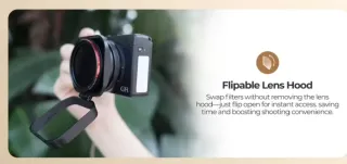 Parasol de lente abatible para cámaras. - Permite cambiar filtros sin quitar el parasol. - Acceso rápido para mayor comodidad al disparar.