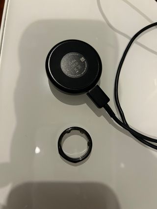 Conjunto de carregador e anel Oura Ring 3. Tamaño 13 - Carregador circular com cabo USB. - Anel Oura Ring 3.
