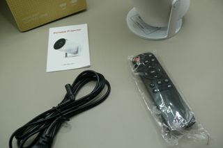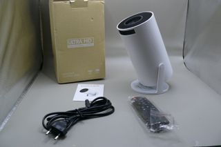 Projetor portátil ultra HD, na cor branca, em ótimo estado. Inclui projetor, cabo de alimentação e controle remoto. - Projetor com lente de alta definição. - Design compacto e elegante. - Fácil de usar.