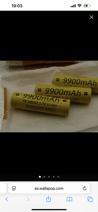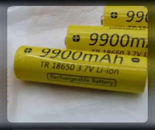 Baterías recargables de iones de litio de Dawukala. Son baterías nuevas. Baterías recargables de iones de litio. Batería recargable con circuito de protección de recarga/descarga. Perfecto para linterna o dispositivos electrónicos. Especificaciones: Modelo: 18650 Capacidad: 9900mAh Voltaje: 3.7 V Química: Li-ion Color: Amarillo Tamaño: 65 mm (largo) x 17 mm (diámetro) Valor anunciado para cada unidad, puedo vender todas juntas o por separado - Modelo: TR 18650 - Capacidad: 9900mAh - Voltaje: 3.7V