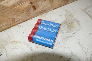 Conjunto de 4 pilhas alcalinas recarregáveis. Nunca usadas, Valor anunciado para as quatro unidades - Cor azul com detalhes vermelhos. - Capacidade de 9800mAh.