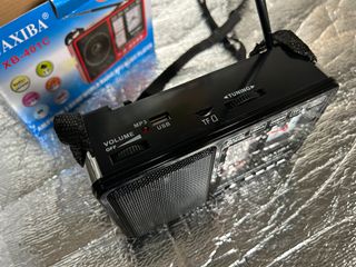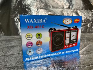 Rádio portátil Waxiba XB-401C com diversas funcionalidades. Rádio portátil Waxiba XB-401C. Este dispositivo multifuncional é um rádio mundial de 3 bandas (AM/FM/SW) e leitor de MP3. Completo na caixa, nunca usado, a funcionar corretamente. Possui um relógio de quartzo e uma lanterna LED integrada, Bateria recarregável embutida e Funciona com pilhas UM-1x2PCS - Rádio AM/FM/SW - Leitor de MP3 via USB - Entrada para cartão TF - Lanterna integrada - Relógio Quartz