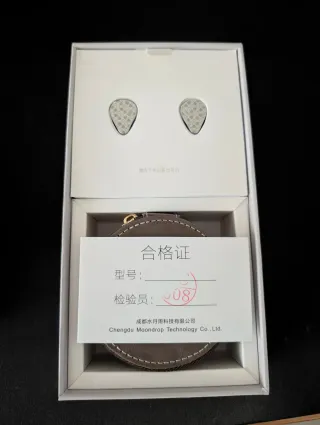 Fones de ouvido Moondrop May com design elegante. - Conexão USB-C com DSP. - Unidade dupla híbrida (dinâmica + planar). - Cabo substituível para experiência HiFi. - Design de fones de ouvido intra-auriculares.