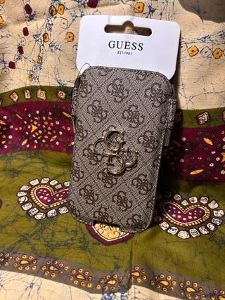 Capa para telemóvel com o padrão Guess. Capa para telemóvel Guess Modelo GUHCP12M4GPSBR para iPhone 12 Pro e modelos menores de 6,1 polegadas ou cartões ou documentos, com logo 4G em metal. Ainda embalado Nunca usado - Modelo GUHCP12M4GPSBR - Design com o monograma da marca - Fecho em zíper