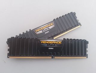 Duas memórias Corsair Vengeance LPX DDR4 de 4GB cada, em excelente estado. - Modelo: Corsair Vengeance LPX DDR4 - Capacidade: 2x 4GB - Tipo: DDR4 - Frequência: 2400mhz - Latência: CL16