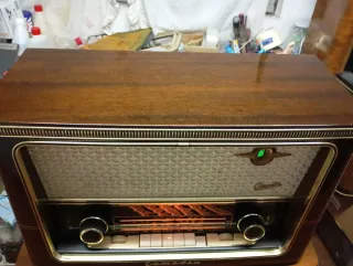 Vendo este lindo rádio da marca GRAETZ,modelo COMEDIA. Este modelo é um dos rádios mais bonitos da época. Este rádio foi todo reparado,o verniz é original e está como novo. Não é fácil encontrar um rádio neste estado para venda. Está a trabalhar muito bem Para melhorar a funcionalidade do rádio foi colocado BLUETOOTH sem alterar o rádio. O rádio conta com FM de origem. Faço reparações e restauros para fora,coloco FM em rádios antigos só com AM e também coloco BLUETOOTH