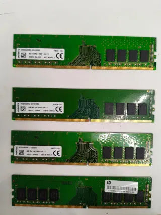 Conjunto de quatro módulos de memória RAM DDR4. - Capacidade: 8GB por módulo. - Velocidade: 2666MHz. - Tipo: DDR4. - Testadas e a funcionar na perfeição