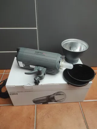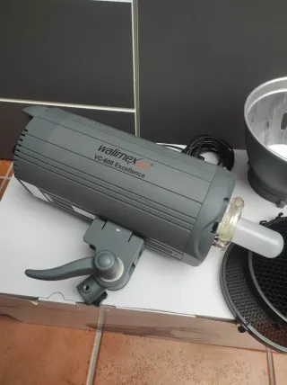 Flash de estúdio Walimex Pro VC-600 W Excellence. - Modelo VC-600 W Excellence. - Potência de 600W. - Design robusto e profissional. está em ótimo estado apenas precisa de uma nova lâmpada de modelagem. Tem modo slave e modo sync. Vem com refletor bowens mount e duas honeycomb grid para o refletor. Faça a sua proposta.