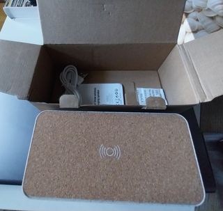 Coluna Bluetooth com design moderno e funcionalidade de carregamento por indução. - Carregamento sem fios. - Design em folha de trigo que parece cortiçamas émais leve e liso. Carregamento rápido por indução para telemóvel Som de 5W /Entrada USB e AUX/ Alta voz/ Bluetooth Wireless Sound