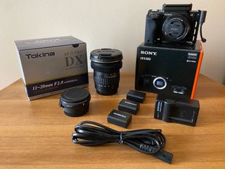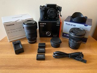 NÃO VENDO A TAMRON EM SEPARADO - Sony a6300, com 6745 obturações, em excelente estado, mais a objetiva do kit (16-50mm f/3.5-5.6), na caixa original e com os acessórios de origem. Incluo também: - Cage Smallrig sem marcas; - Adaptador Smallrig mini HDMI para HDMI; - 3 baterias e carregador; - Adaptador Sigma MC-11 EF para E-mount, em excelente estado, mas sem caixa; - Tamron 17-70mm f/2.8, em excelente estado, sem marcas, fungos ou riscos, com caixa e pára-sol originais; - Tokina 11-20mm f/2.8, em excelente estado, sem marcas, fungos ou riscos, com anel para follow focus mais caixa e pára-sol originais; Material bastante estimado.