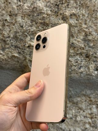 iPhone 12 Pro Max com 128GB de armazenamento na cor dourada. - Design elegante e moderno. - Tela Super Retina XDR. - Sistema de câmera Pro avançado. - Chip A14 Bionic para desempenho superior. Lcd partido mas a funcionar