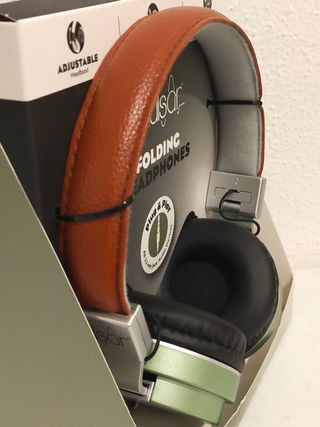 Headphones da marca Pulsar, em verde metalizado e coiso sintético castanho. Novos na embalagem. ... Envio rápido e bem acondicionado.