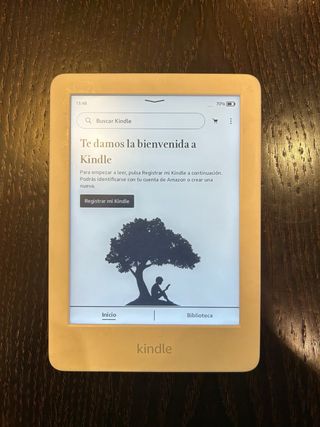 Leitor digital Kindle em acabamento branco. - Tela de alta resolução. - Design leve e portátil.