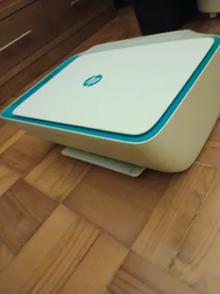 Impressora HP 2632, com um design moderno em branco e azul. Impressora parado há algum tempo. Não tenho a certeza se estará funcional a 100%. - Design elegante em branco e azul.