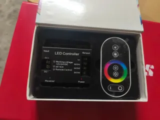 Controlador para tiras de LED com um controlo remoto tátil. - Compatível com 12V/24V. - Alcance de 20M. - Potência máxima de 432W.