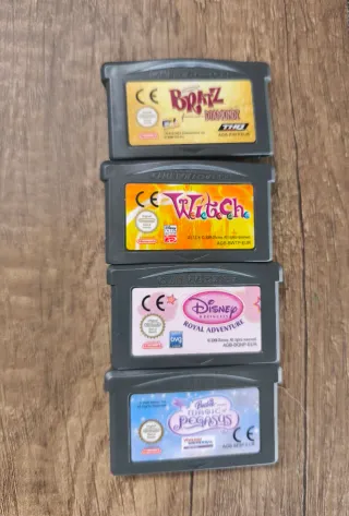 Conjunto de 4 jogos para Game Boy Advance. - Bratz Diamondz - W.I.T.C.H. - Disney Princess: Royal Adventure - Barbie: The Magic of Pegasus