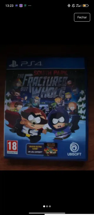 Jogo de RPG para PlayStation 4, South Park: The Fractured But Whole. - Inclui o jogo South Park: The Stick of Truth como bónus. - Classificação etária: 18 anos.