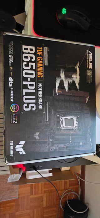 Placa base ASUS TUF Gaming B650-Plus. Comprada à duas semanas. - Soporte para procesadores AMD Ryzen. - Chipset B650. - Conectividad M.2. - Compatible con Aura Sync RGB. - Soporte para DDR5.