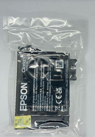 Tinteiro de substituição para impressoras Epson. - Cor: Preto - Modelo: 18 - Tipo: BK (Black) - Inclui QR code e instruções de instalação (PUSH/APPUYEZ). - Selado na embalagem original.
